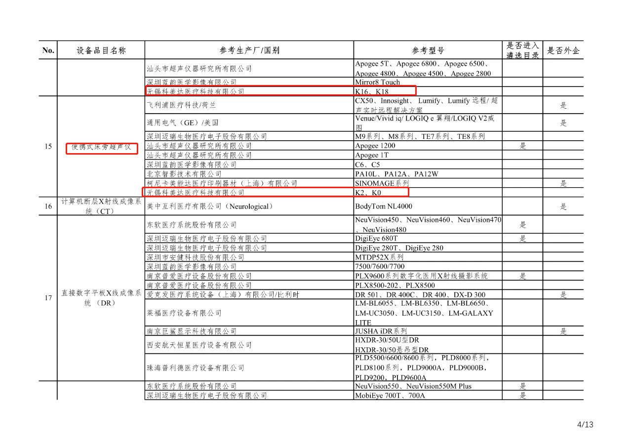 無錫科美達彩超進入新冠肺炎疫情防治急需醫(yī)學(xué)裝備目錄